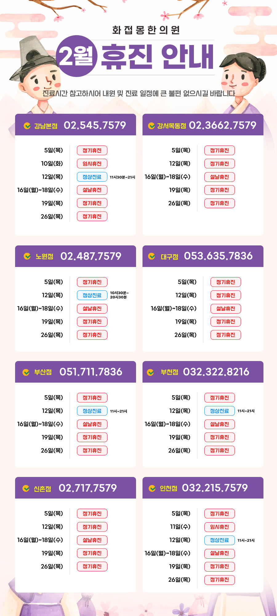 [진료일정 ] 2026년 2월 진료일정